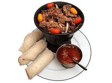 Tender chunks of meat marinated in Ethiopian spices, cooked to perfection in a clay pot, and served with injera.